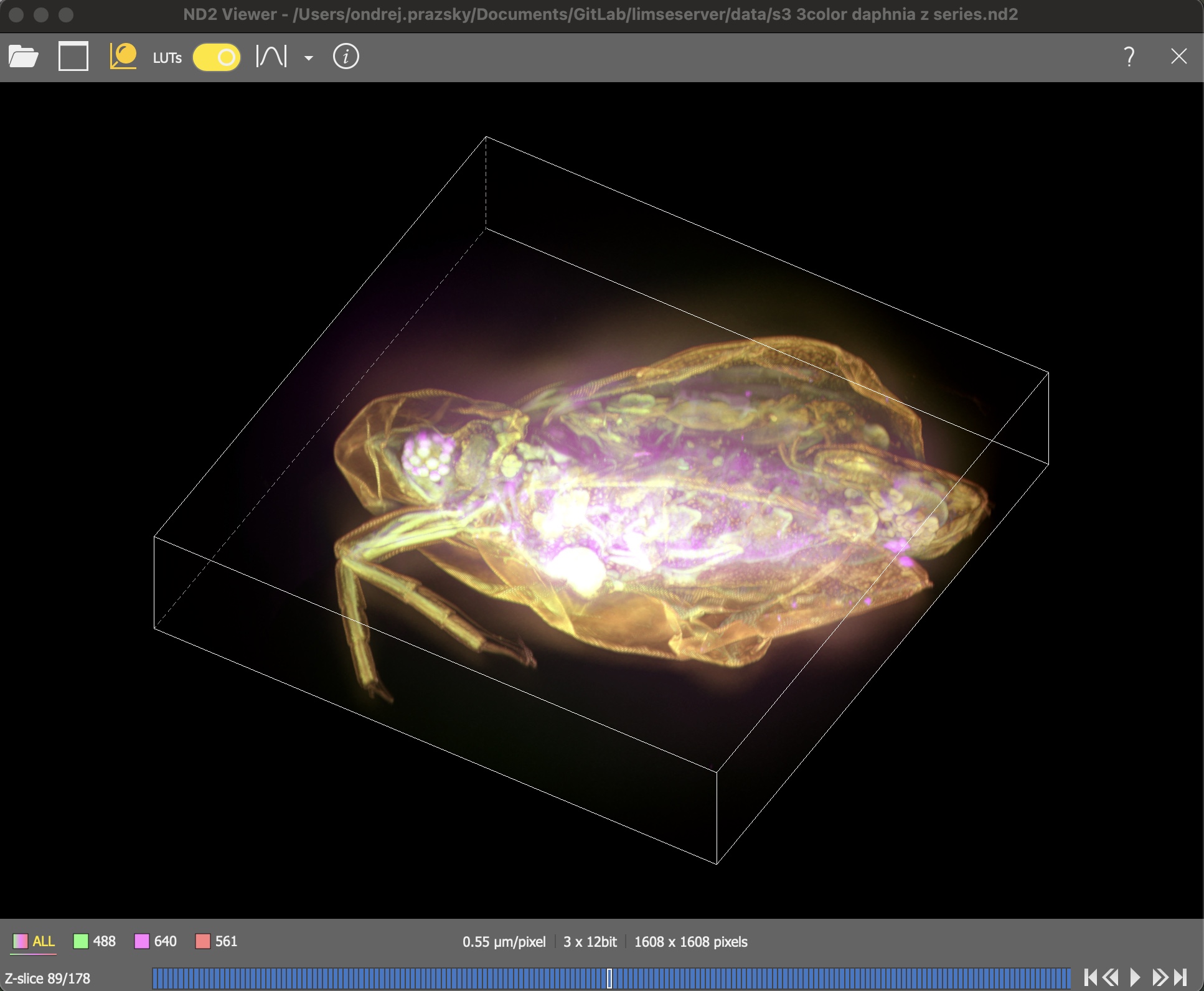 - Visualize ND2 files in both 2D image view and 3D volume view.